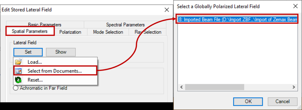 - Stored Lateral Fieldでは光源のパラメータを定義することができます。(例えば、波長、偏光)