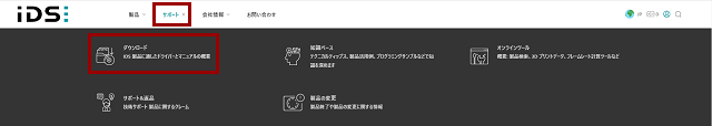 IDS社のウェブサイト(https://jp.ids-imaging.com/)のサポート項目からダウンロードを選択します。