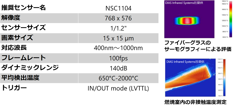 NIT社は、新しいイメージング技術で、ハイダイナミックレンジを持つCMOSセンサーを完成させました。120dBを超えるハイダイナミックレンジを達成する対数応答型のセンサーは、650°C~2000°Cの温度変化でも、シーン全体をサチレーションを起こすことなく撮像できます。